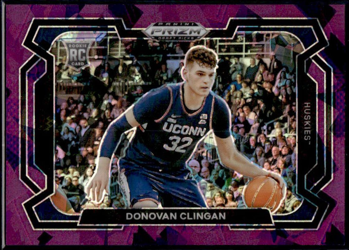 The Donovan Clingan 2024 Prizm Draft Picks #95b Purple Ice /149 Rookie card is 1 of 234 Donovan Clingan's card variations in the 2024 Prizm Draft Picks set being tracked by Sports Card Investor, including #95b Base, #95 Base, #95 Variation, #95b Green, and #95 Green.
