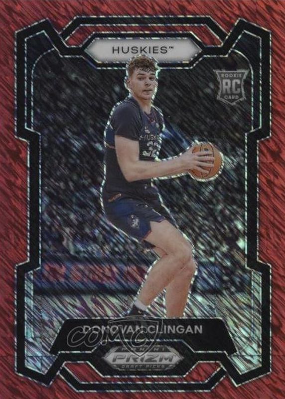The Donovan Clingan 2024 Prizm Draft Picks #95 Red Shimmer /9 Rookie card in Raw condition has not changed in price in the last 30 days and was last sold for $77.00 .