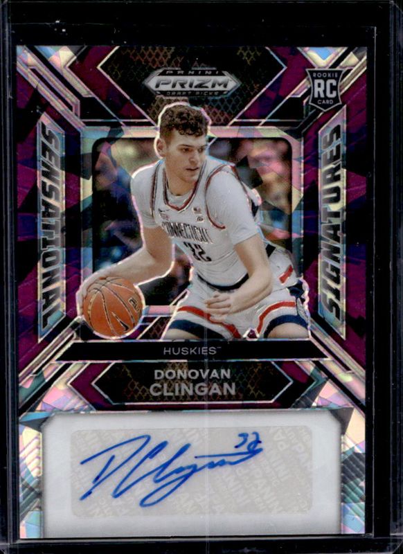 The Donovan Clingan 2024 Prizm Draft Picks #SS-DVC Sensational Signatures - Purple Ice /99 Rookie card is 1 of 234 Donovan Clingan's card variations in the 2024 Prizm Draft Picks set being tracked by Sports Card Investor, including #95b Base, #95 Base, #95 Variation, #95b Green, and #95 Green.