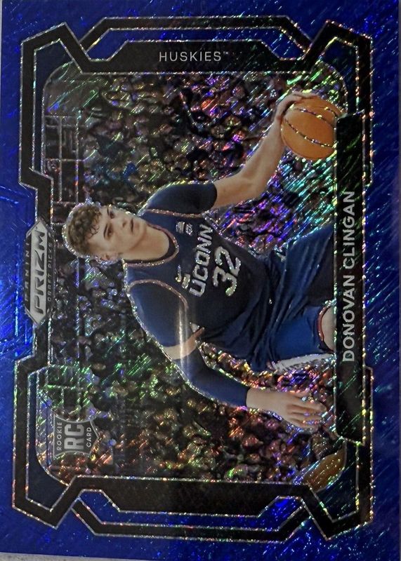 The Donovan Clingan 2024 Prizm Draft Picks #95 Variation - Blue Shimmer /19 Rookie card in Raw condition has not changed in price in the last 30 days and was last sold for $22.40 .