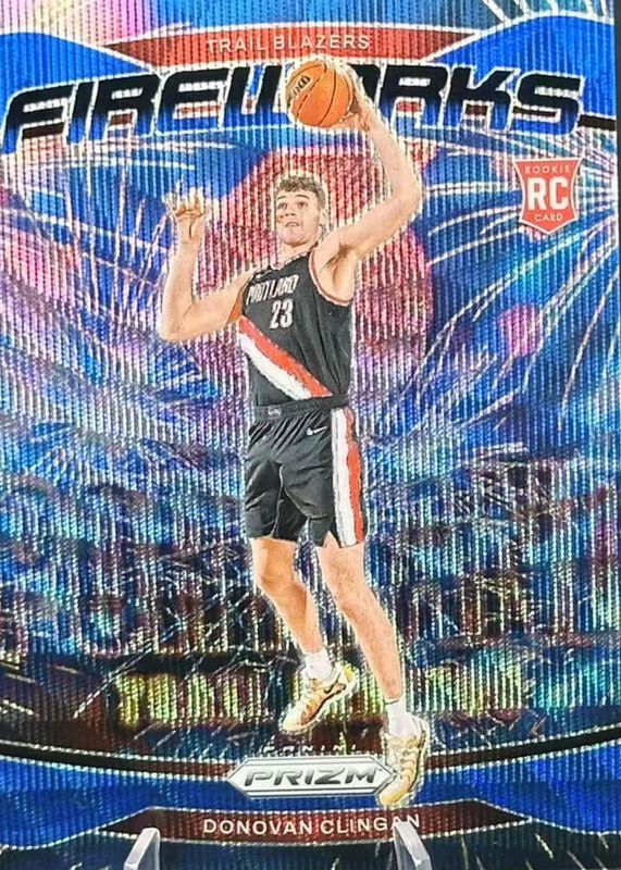 DONOVAN CLINGAN FIREWORKS BLUE WAVE ROOKIE 157/175 PRIZM 2024-25 TRAILBLAZERS