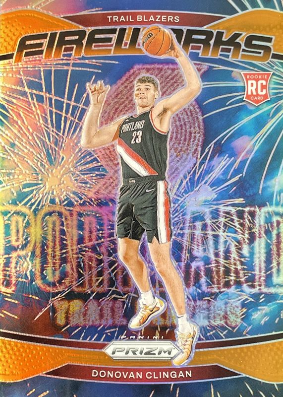 2024-25 Panini Prizm Donovan Clingan Fireworks Orange 39/49 Trail Blazers RC