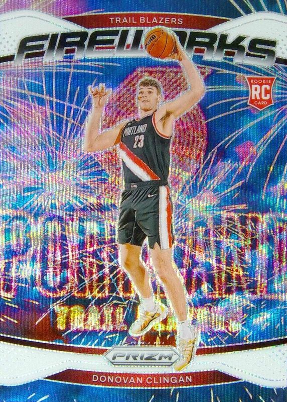 Donovan Clingan 2024-25 Panini Prizm 20/20 White Silver Fireworks RC Blazers #9