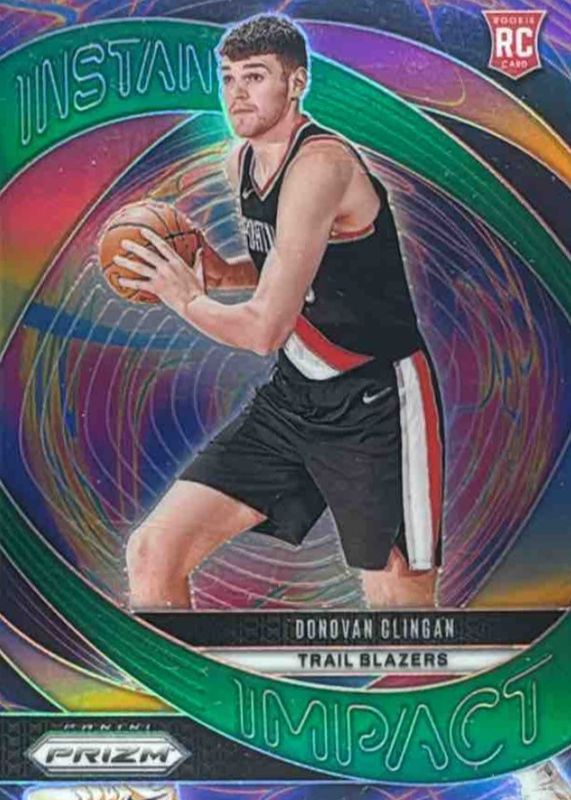 The Donovan Clingan 2024 Prizm #15 Instant Impact - Green Rookie card in Raw condition has not changed in price in the last 30 days and was last sold for $1.00 .