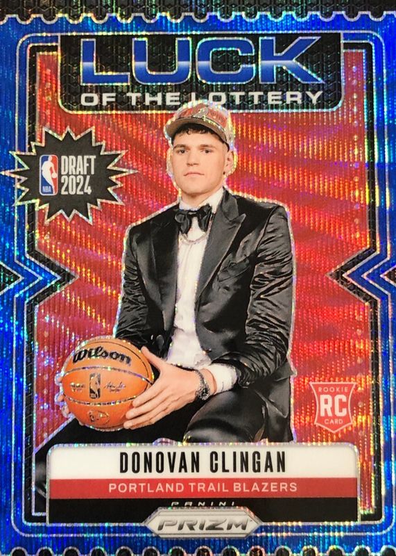 2024-25 Prizm Donovan Clingan Luck of the Lottery RC Blue Wave #99/175