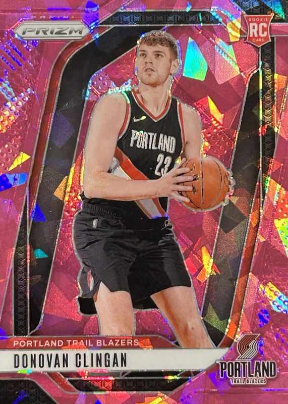 2024-25 NBA Prizm Donovan Clingan Pink Cracked Ice RC #221 Trail Blazers