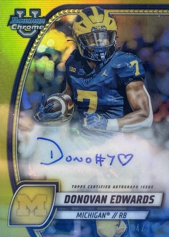 DONOVAN EDWARDS Michigan 2024 Bowman Chrome U University YELLOW Ref AUTO # 35/75