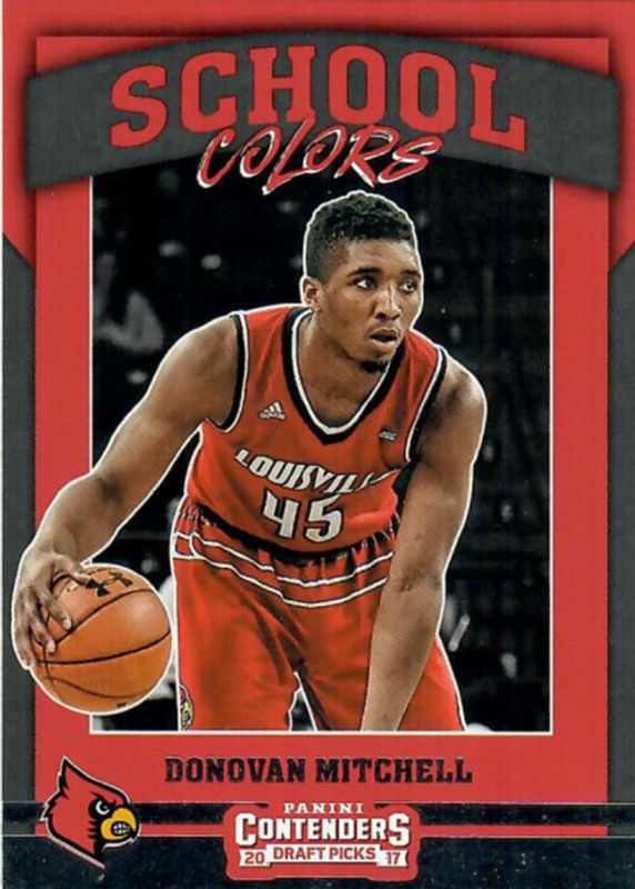 The Donovan Mitchell 2017 Contenders Draft Picks #29 School Colors Rookie card in Raw condition has not changed in price in the last 30 days and was last sold for $1.25 .