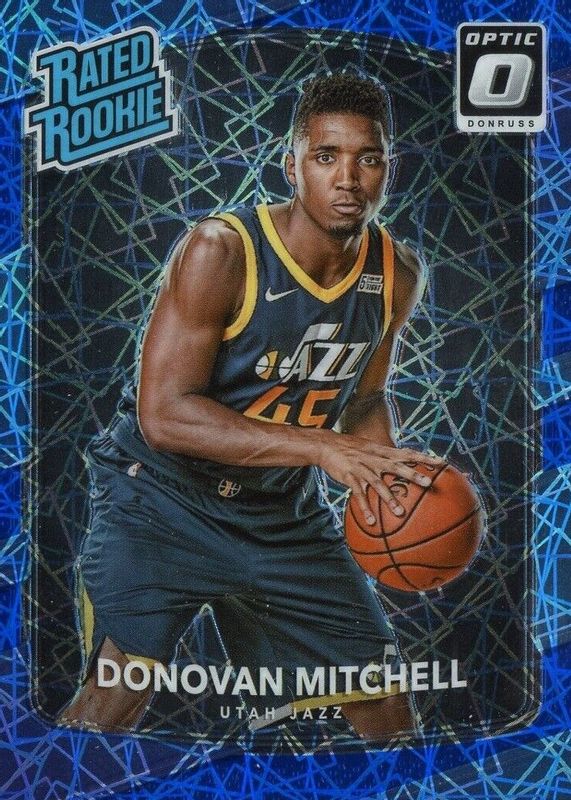 The Donovan Mitchell 2017 Optic #188 Blue Velocity Rookie card in Raw condition has moved down -$4.49 (-26.4%) in the last 30 days and was last sold for $12.50 .