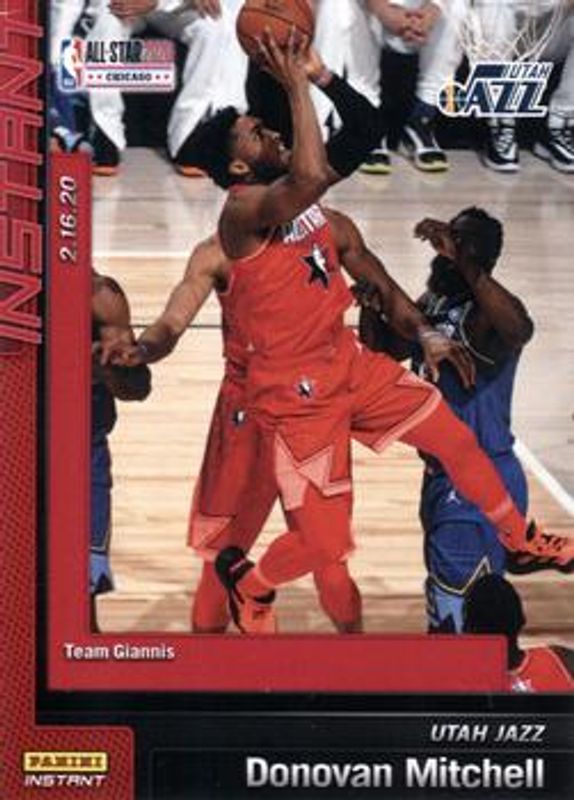 The Donovan Mitchell 2019 Panini Instant All Stars #21 Base card is 1 of 3 Donovan Mitchell's card variations in the 2019 Panini Instant All Stars set being tracked by Sports Card Investor, including Green /10, and Black /1.