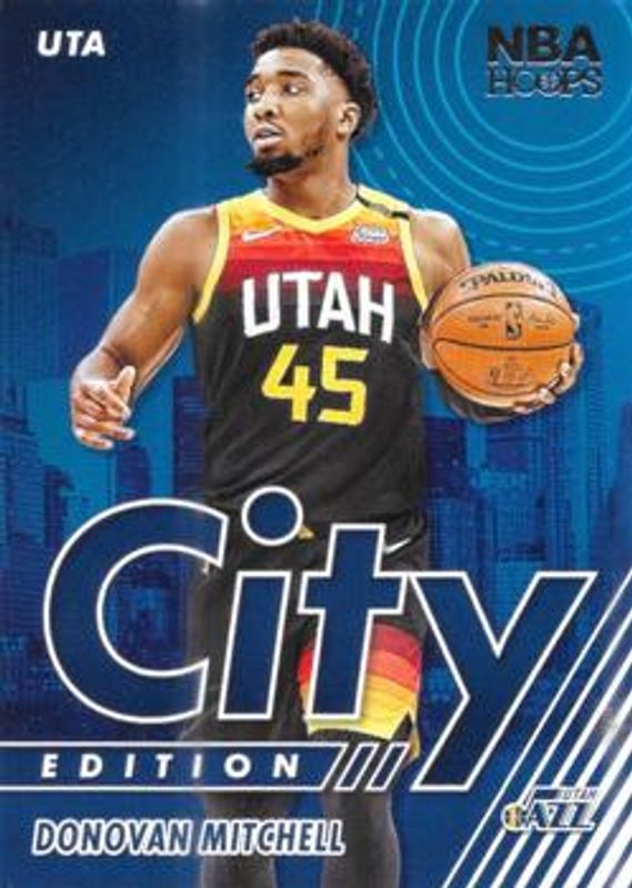 The Donovan Mitchell 2021 Hoops #6 City Edition card is 1 of 69 Donovan Mitchell's card variations in the 2021 Hoops set being tracked by Sports Card Investor, including Base, Anniversary Edition, Blue, Green Ice, and Hyper Blue.