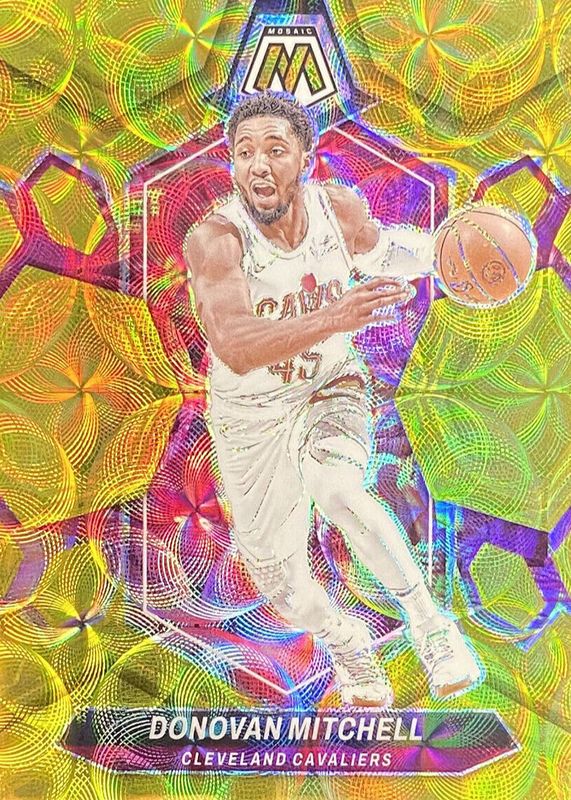 This card is 1 of 17 Donovan Mitchell's card variations in the 2023 Mosaic set being tracked by Sports Card Investor, including Choice Peacock /(SSP), Genesis /(SSP), Glitter /(SSP), White Sparkle /(SSP), and Fast Break Gold /10.