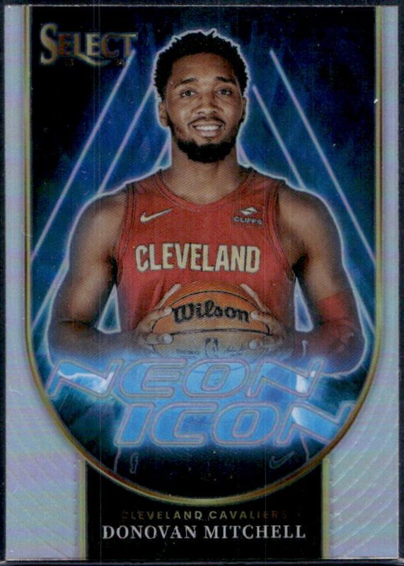 The Donovan Mitchell 2023 Select #19 Neon Icon - Silver card is 1 of 230 Donovan Mitchell's card variations in the 2023 Select set being tracked by Sports Card Investor, including Concourse, Courtside, Mezzanine, Premier Level, and Concourse Blue Cracked Ice.