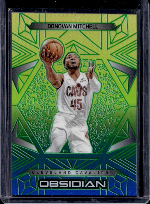 The Donovan Mitchell 2024 Obsidian #46 Electric Etch Caldera card is 1 of 81 Donovan Mitchell's card variations in the 2024 Obsidian set being tracked by Sports Card Investor, including #198 Base, #46 Base, #198 Electric Etch Caldera, #198 Electric Etch International, and #46 Electric Etch International.