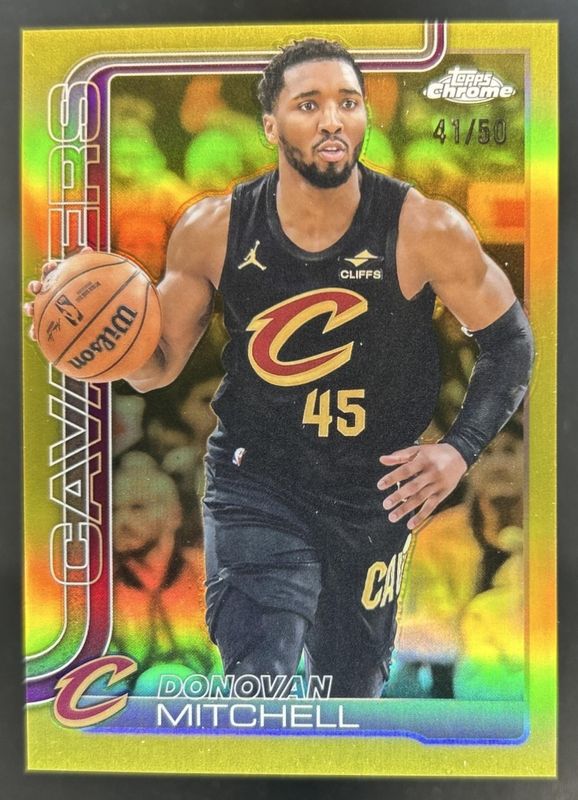 The Donovan Mitchell 2025 Topps Chrome #69 Gold Refractor /50 card is 1 of 202 Donovan Mitchell's card variations in the 2025 Topps Chrome set being tracked by Sports Card Investor, including Base, Basketball Refractor, Box Set Refractor, Image Variation, and Lightboard Logo Refractor.