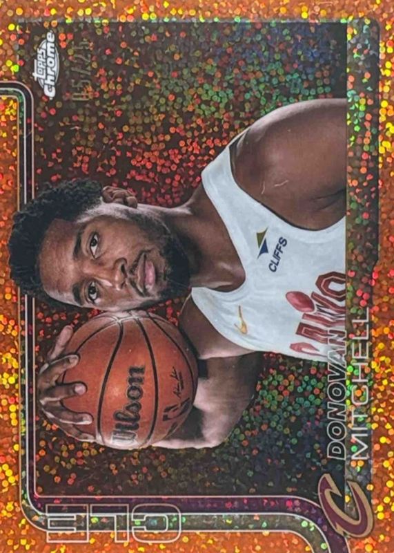 Best Prices Available For Sale of Donovan Mitchell 2025 Topps Chrome #69 Image Variation - Orange Speckle Refractor /25