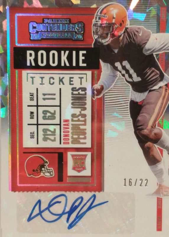 This card is 1 of 16 Donovan Peoples-Jones' card variations in the 2020 Contenders set being tracked by Sports Card Investor, including Rookie Ticket Auto, Rookie Ticket Auto Variation, Rookie Ticket Auto - Red Zone Ticket, Rookie Ticket Auto - Ticket Stub (/11), and Rookie Ticket Auto Variation - Red Zone Ticket.