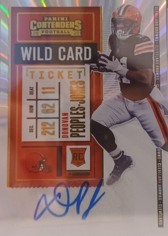 The Donovan Peoples-Jones 2020 Contenders #210 Rookie Ticket Auto - Wild Card /(SSP) card in Raw condition has not changed in price in the last 30 days.