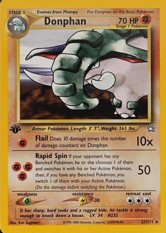 ![Donphan - 21/111 [Neo Genesis] Pokemon TCG - 1st Edition - Regular RARE - NM](https://i.ebayimg.com/images/g/t1EAAeSwHe5oxdFs/s-l1600.jpg)