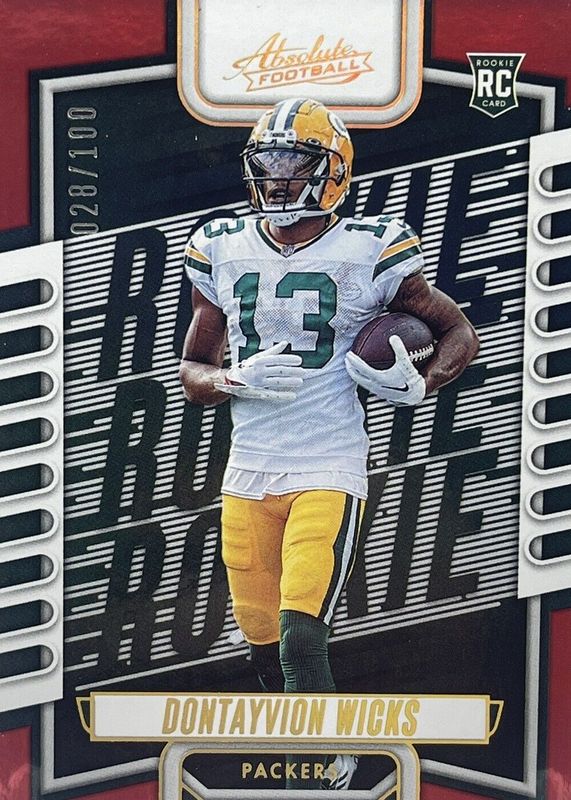 2023 Absolute DONTAYVION WICKS Red /100 Rookie Card RC #199 Packers SP