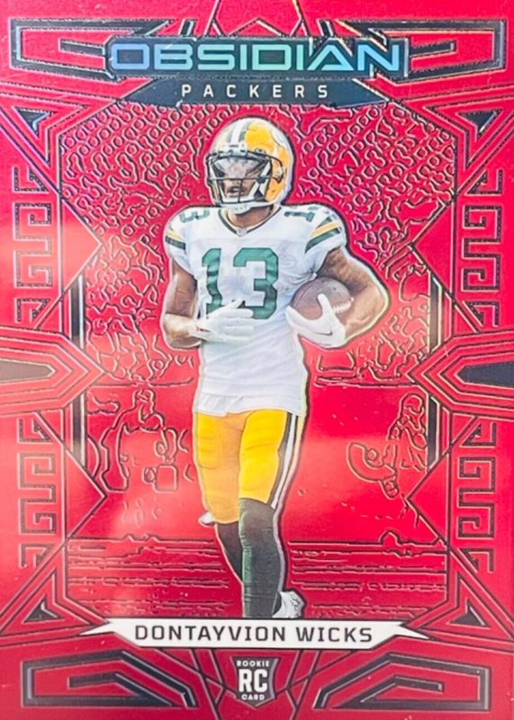 2023 Panini Obsidian DONTAYVION WICKS Red Flood 35/90 RC Rookie #138 PACKERS