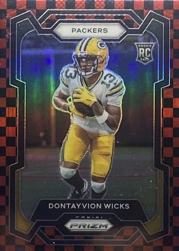 2023 Prizm Dontayvion Wicks Black & Red Checker RC #333 GreenBay Packers