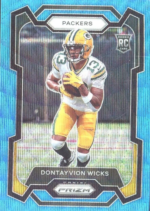 2023 Prizm Dontayvion Wicks #333 Blue Wave /199 Rookie Card Packers