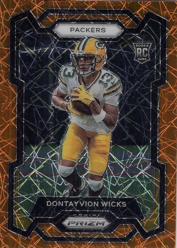 The Dontayvion Wicks 2023 Prizm #333 Lazer Rookie card in Raw condition has moved up $0.42 (+42.9%) in the last 30 days and was last sold for $1.40 .