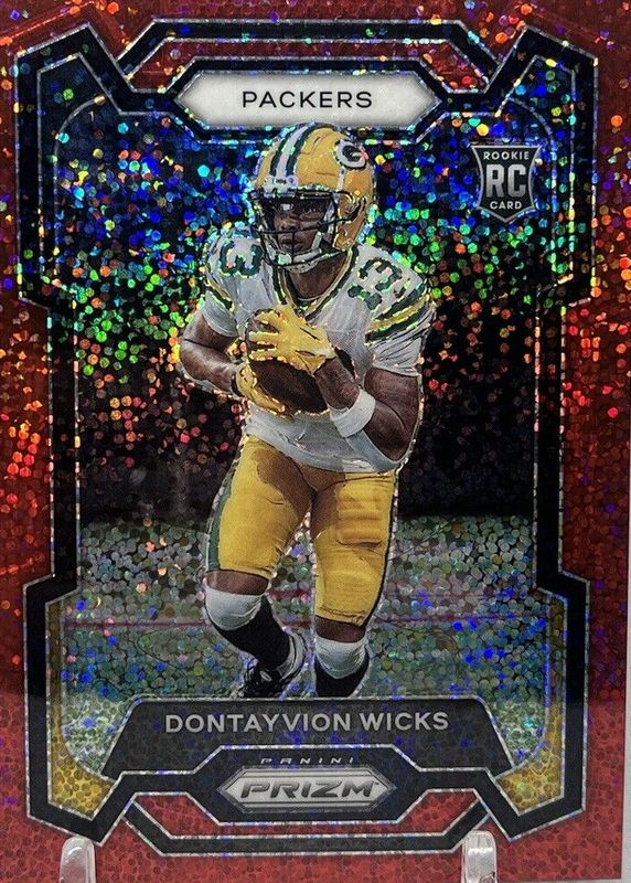 2023 Panini Prizm Dontayvion Wicks RC Red Sparkle Rookie #333 Packers