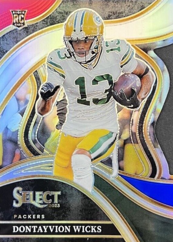 The Dontayvion Wicks 2023 Select #271 Club Level Red & Blue Die-Cut Rookie card in Raw condition has not changed in price in the last 30 days and was last sold for $0.99 .