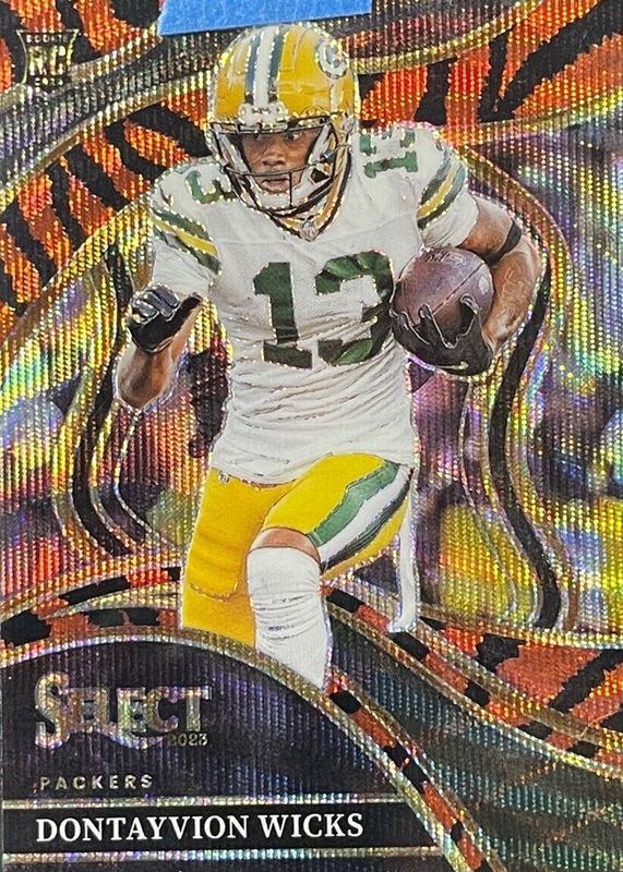 The Dontayvion Wicks 2023 Select #271 Club Level Tiger /(SSP) Rookie card in Raw condition has not changed in price in the last 30 days and was last sold for $166.50 .