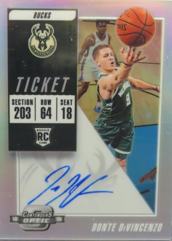 The Donte DiVincenzo 2018 Contenders Optic #121 Rookie Ticket Auto Variation (Green Jersey) card in Raw condition has not changed in price in the last 30 days and was last sold for $23.50 .