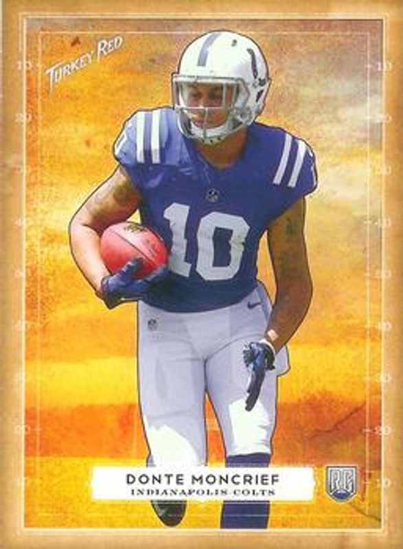 The Donte Moncrief 2014 Topps Turkey Red #46 Base Rookie card is 1 of 6 Donte Moncrief's card variations in the 2014 Topps Turkey Red set being tracked by Sports Card Investor, including Mini, Printing Plate Black /1, Printing Plate Cyan /1, Printing Plate Magenta /1, and Printing Plate Yellow /1.