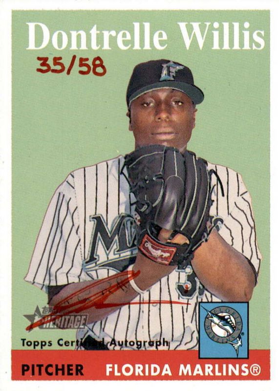 The Dontrelle Willis 2007 Topps Heritage #ROA-DWW Real One Autographs - Red Ink /58 card in Raw condition has not changed in price in the last 30 days and was last sold for $41.01 .