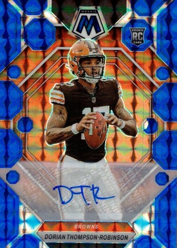 The Dorian Thompson-Robinson 2023 Mosaic #316 Rookie Autographs - Blue (/99) card in Raw condition has not changed in price in the last 30 days and was last sold for $23.51 .