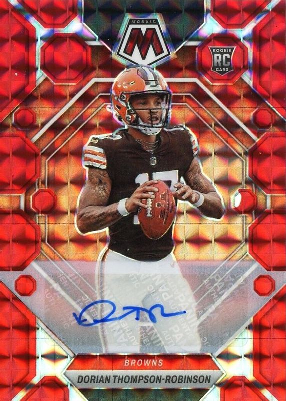 The Dorian Thompson-Robinson 2023 Mosaic #316 Rookie Autographs - Red (/199) card in Raw condition has not changed in price in the last 30 days and was last sold for $34.00 .
