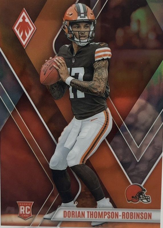 This card is 1 of 28 Dorian Thompson-Robinson's card variations in the 2023 Phoenix set being tracked by Sports Card Investor, including Base, Color Burst, Silver, Silver Seismic, and Fire Burst /340.