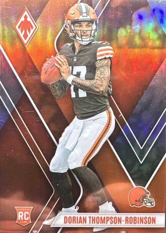 This card is 1 of 28 Dorian Thompson-Robinson's card variations in the 2023 Phoenix set being tracked by Sports Card Investor, including Base, Color Burst, Silver, Silver Seismic, and Fire Burst /340.