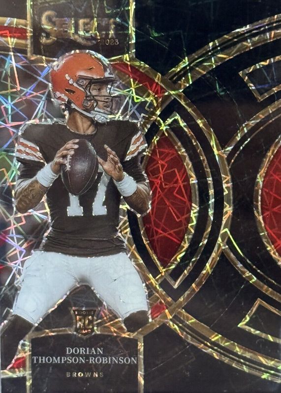 This card is 1 of 62 Dorian Thompson-Robinson's card variations in the 2023 Select set being tracked by Sports Card Investor, including Field Level, Premier Level, Field Level Silver, Premier Level Black & Gold Die-Cut, and Premier Level Black & Green Die-Cut.