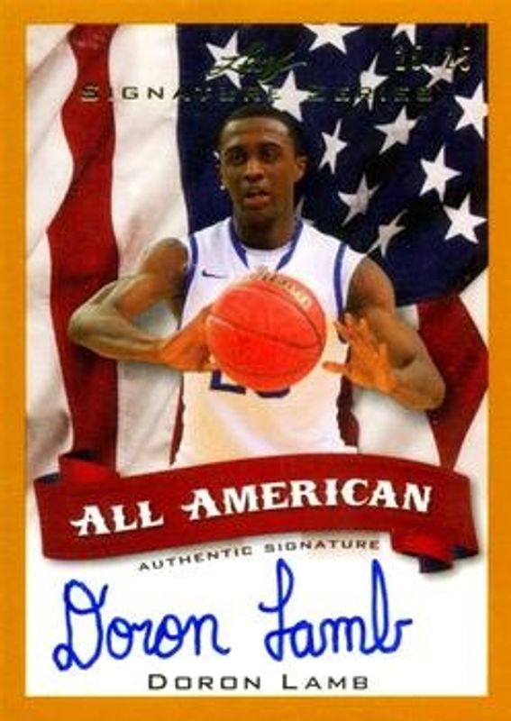 The Doron Lamb 2012 Leaf Signature Series #AA-DL2 All American - Gold /25 Rookie card is 1 of 43 Doron Lamb's card variations in the 2012 Leaf Signature Series set being tracked by Sports Card Investor, including Base, Silver /99, Gold /25, Blue /10, and Red /5.