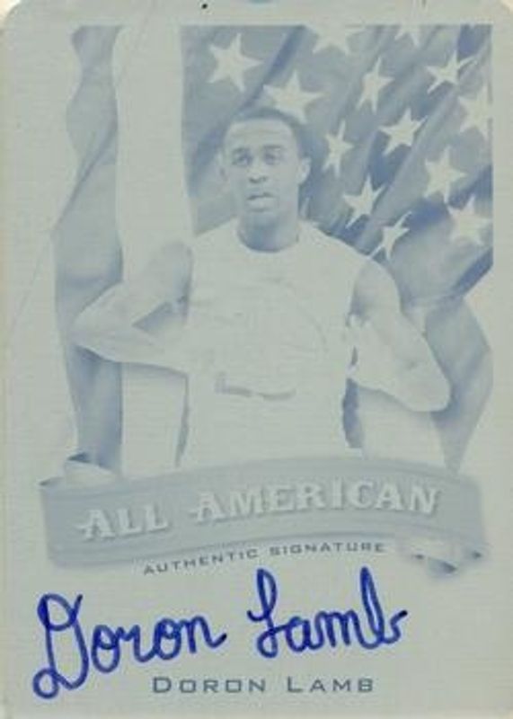 The Doron Lamb 2012 Leaf Signature Series #AA-DL2 All American - Printing Plates Black /1 Rookie card is 1 of 43 Doron Lamb's card variations in the 2012 Leaf Signature Series set being tracked by Sports Card Investor, including Base, Silver /99, Gold /25, Blue /10, and Red /5.