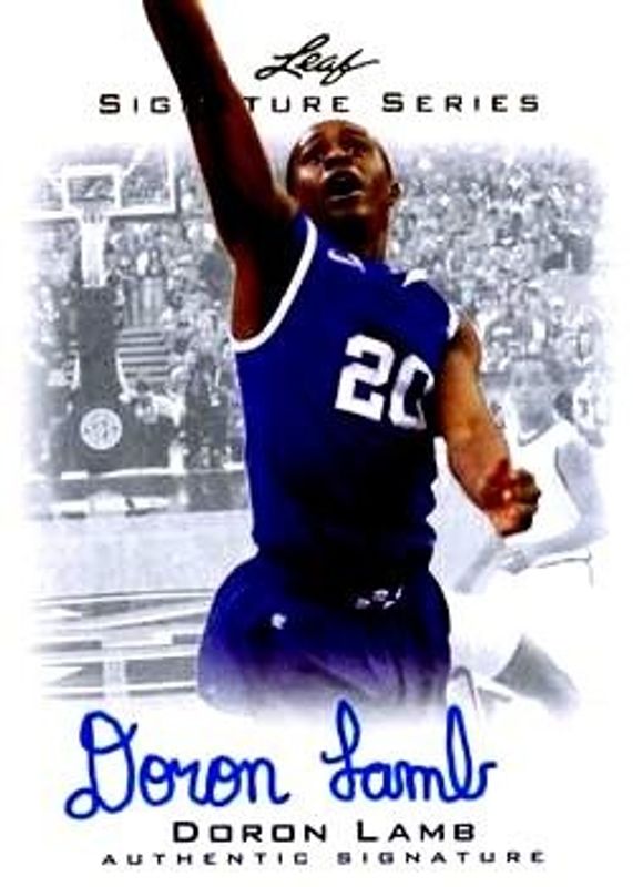The Doron Lamb 2012 Leaf Signature Series #BA-DL2 Base Rookie card is 1 of 43 Doron Lamb's card variations in the 2012 Leaf Signature Series set being tracked by Sports Card Investor, including Silver /99, Gold /25, Blue /10, Red /5, and Printing Plates Black /1.