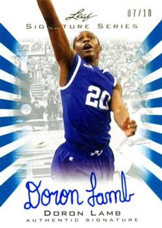 The Doron Lamb 2012 Leaf Signature Series #BA-DL2 Blue /10 Rookie card is 1 of 43 Doron Lamb's card variations in the 2012 Leaf Signature Series set being tracked by Sports Card Investor, including Base, Silver /99, Gold /25, Red /5, and Printing Plates Black /1.