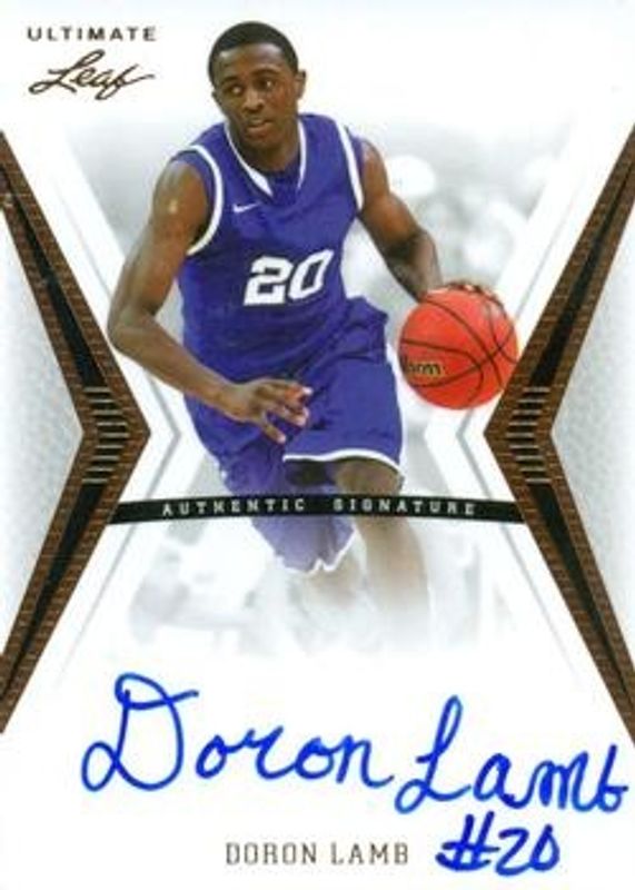 The Doron Lamb 2012 Leaf Ultimate Draft #BA-DL2 Base Rookie card is 1 of 24 Doron Lamb's card variations in the 2012 Leaf Ultimate Draft set being tracked by Sports Card Investor, including Printing Plates Black, Printing Plates Cyan, Printing Plates Magenta, Printing Plates Yellow, and Silver /25.