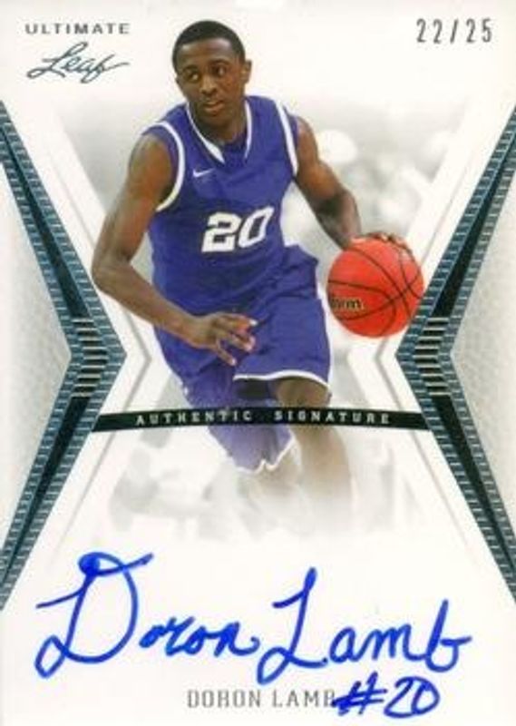 The Doron Lamb 2012 Leaf Ultimate Draft #BA-DL2 Silver /25 Rookie card is 1 of 24 Doron Lamb's card variations in the 2012 Leaf Ultimate Draft set being tracked by Sports Card Investor, including Base, Printing Plates Black, Printing Plates Cyan, Printing Plates Magenta, and Printing Plates Yellow.