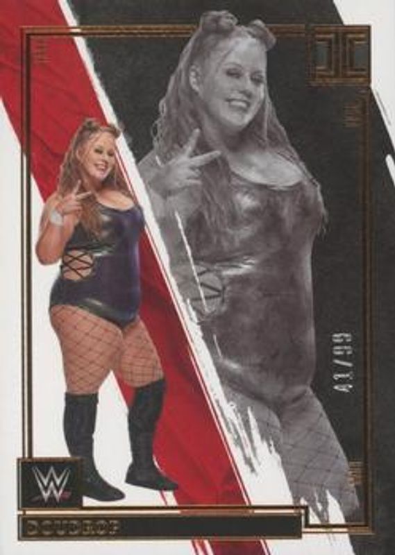 The Doudrop 2022 Impeccable WWE #60 Base /99 card is 1 of 14 Doudrop's card variations in the 2022 Impeccable WWE set being tracked by Sports Card Investor, including Silver /49, Gold /35, Holo Silver /25, Holo Gold /10, and Platinum /1.