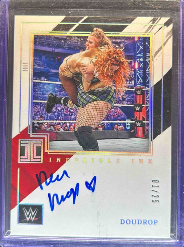 The Doudrop 2022 Impeccable WWE #IN-DDR Indelible Ink - Holo Silver /25 card is 1 of 14 Doudrop's card variations in the 2022 Impeccable WWE set being tracked by Sports Card Investor, including Base /99, Silver /49, Gold /35, Holo Silver /25, and Holo Gold /10.