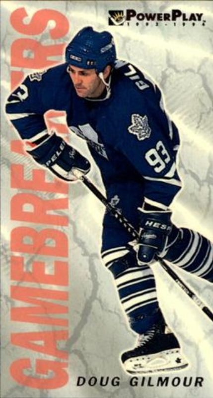 The Doug Gilmour 1993 Fleer PowerPlay #2 Gamebreakers card is 1 of 2 Doug Gilmour's card variations in the 1993 Fleer PowerPlay set being tracked by Sports Card Investor, including Point Leaders.