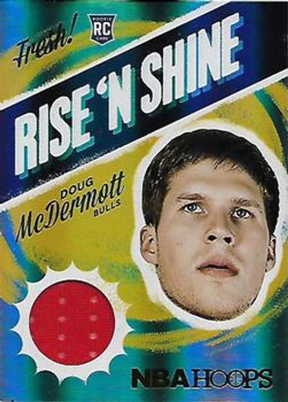 The Doug McDermott 2014 Hoops #11 Rise N' Shine Memorabilia Rookie card is 1 of 20 Doug McDermott's card variations in the 2014 Hoops set being tracked by Sports Card Investor, including Base, Gold, Green, Red Back, and Silver /399.