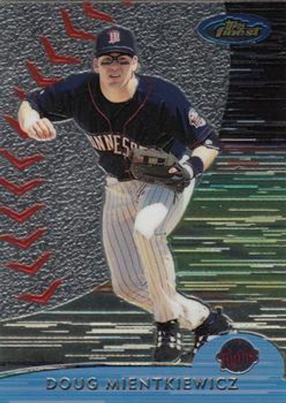 The Doug Mientkiewicz 2000 Topps Finest #184 Base card is 1 of 3 Doug Mientkiewicz's card variations in the 2000 Topps Finest set being tracked by Sports Card Investor, including Gold Refractor /100, and Refractor /1000.
